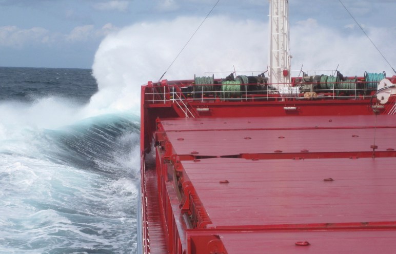 Arrastrero faenando con marejada.